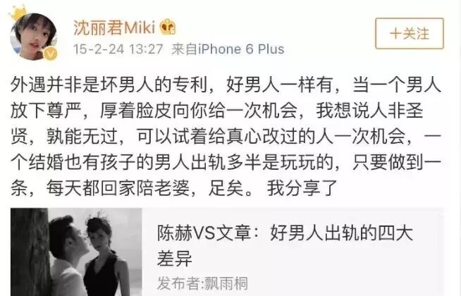 從沈麗君的微博中,可以看出來,她是一個單純善良,很容易滿足的女人。
