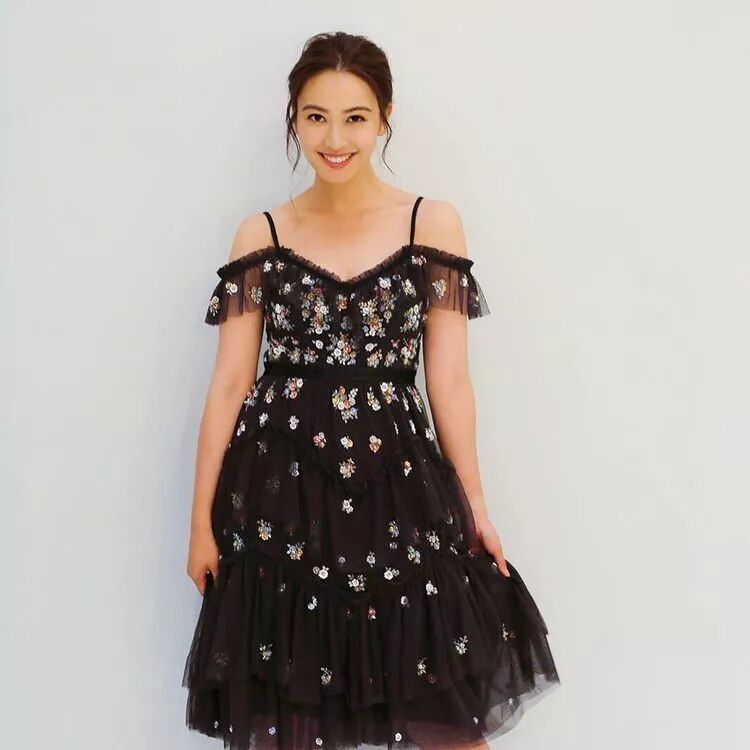 除了劇中造型,朱千雪出席活動的造型都同樣突顯女神的知性氣質。例如這套露肩的碎花連身裙,配上半馬尾髮型,突顯女性的成熟韻味。