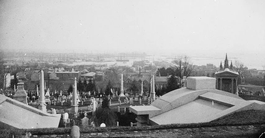 在美國,墓葬現代化運動始於十九世紀中葉,先是在波士頓,隨後影響波及到其它城市,比如紐約、費城、匹茲堡。自從工業革命開始,大量的鄉村人口進城打工定居。巨大的人口壓力導致土地價格暴漲,傳統下城的教堂墓地很快便擁擠不堪。窮人死了埋不起的同時,經濟利益的驅動,又把開發商的資本吸引到這些寸金之地。除了極個別教堂墓葬,曼哈頓的大塊墳地早已被抹平痕跡。今天很少有人知道,地處紐約大學的華盛頓廣場,地下也曾白骨累累。
