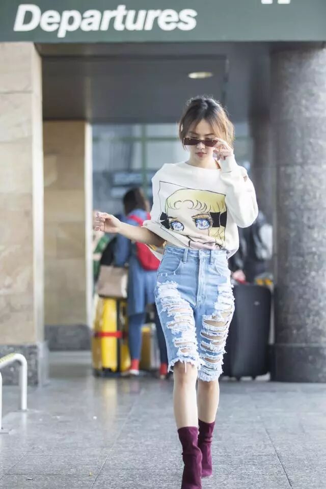 這件破洞的牛仔褲更是厲害了,褲子本來就搶眼球了,還加上衛衣的另類穿法,看來還是蔡依林會穿啊,什麼造型都能凹!