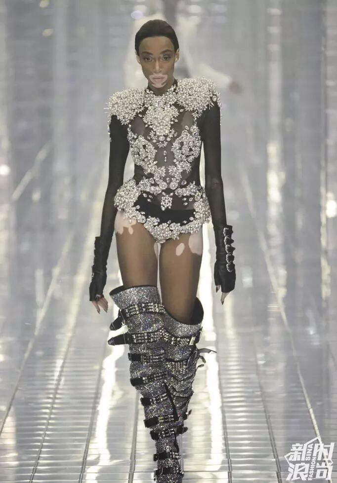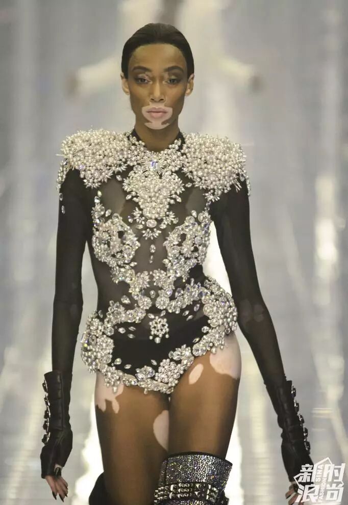 首先是出現在Philipp Plein秀場上的加拿大籍超模,也是世界上唯一一個患有嚴重皮膚病的女模Winnie Harlow。