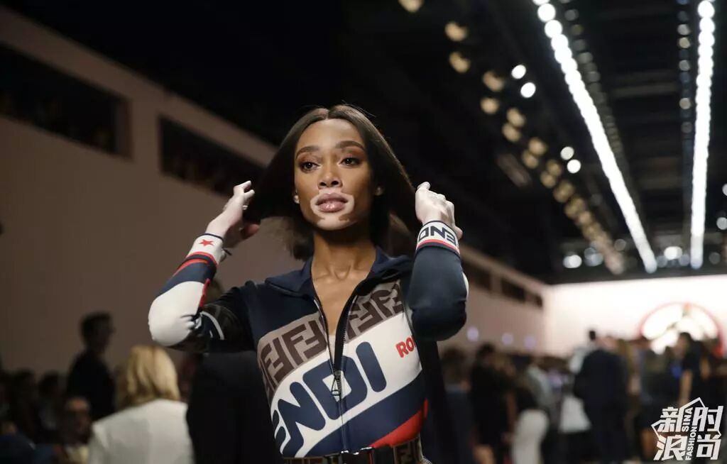 這次在米蘭,Winnie Harlow除了以模特的身份出現在秀場,還以嘉賓的身份助陣了Fendi和Byblos專場秀。