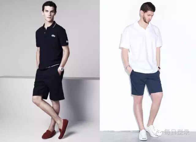 POLO衫配短褲,是很好的組合。寬鬆款的POLO衫不僅會顯得松垮沒精神,還會破壞全身的比例,因此最好選擇修身的款式。夏天建議穿白色或藍色系的POLO衫,搭配短褲時卷一下褲腿,清爽感立馬顯現。