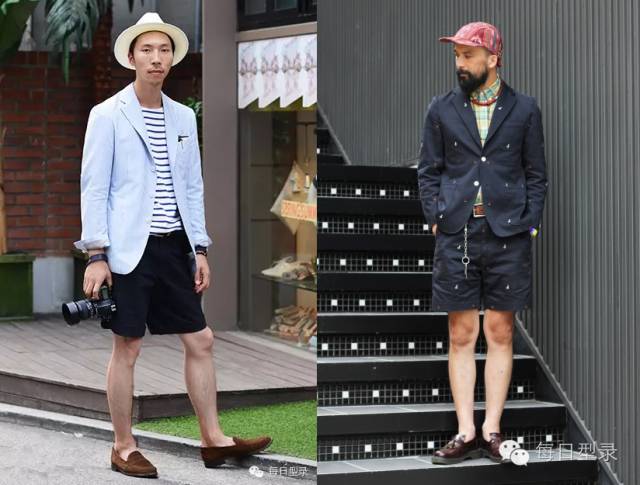 想嘗試正裝,就要選擇亞麻或西裝面料的短褲。鞋子最好是布洛克鞋或樂福鞋。