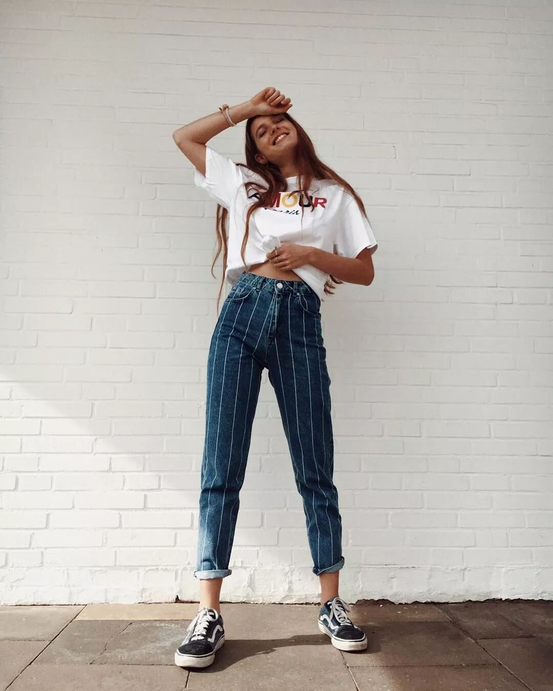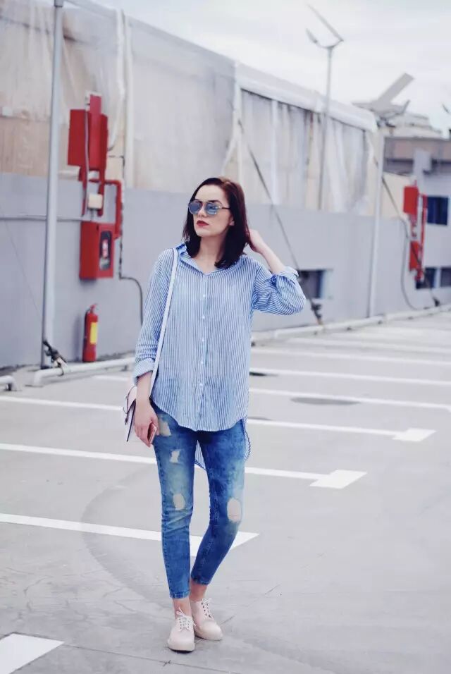 九分褲一定要選擇高腰的款式。高腰的設計能在視覺上拉長你的腿部線條,即便是搭配平底運動鞋你也照樣可以擁有瘋狂大長腿。