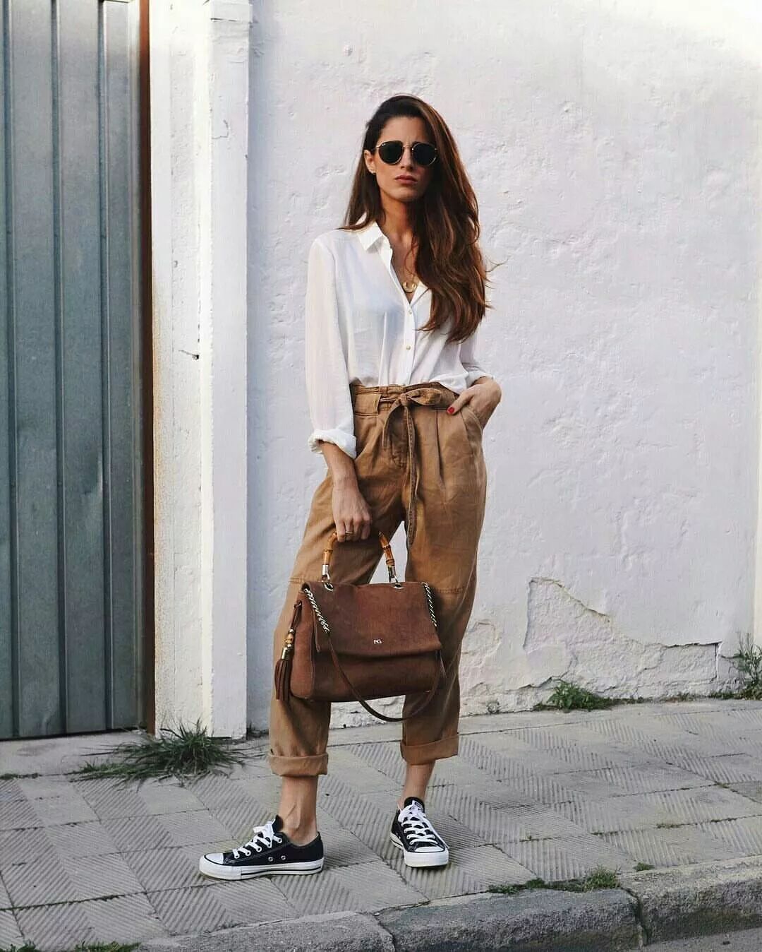 加上九分紙袋褲本身就是自帶高腰線的設計,可以充分拉長你的腿部比例,即便搭配平底運動鞋,也能輕鬆穿出兩米大長腿既視感!