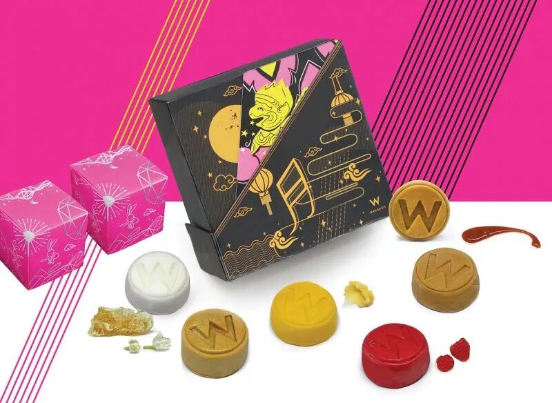 特色:傳統月餅口味,搭配粉嫩馬卡龍色系包裝,別有新意。