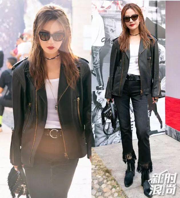 趙薇亮相米蘭,她身穿黑色皮夾克,搭配簡單白T和毛邊牛仔褲,酷到沒朋友,希望瘦了的小燕子再次飛得更高。