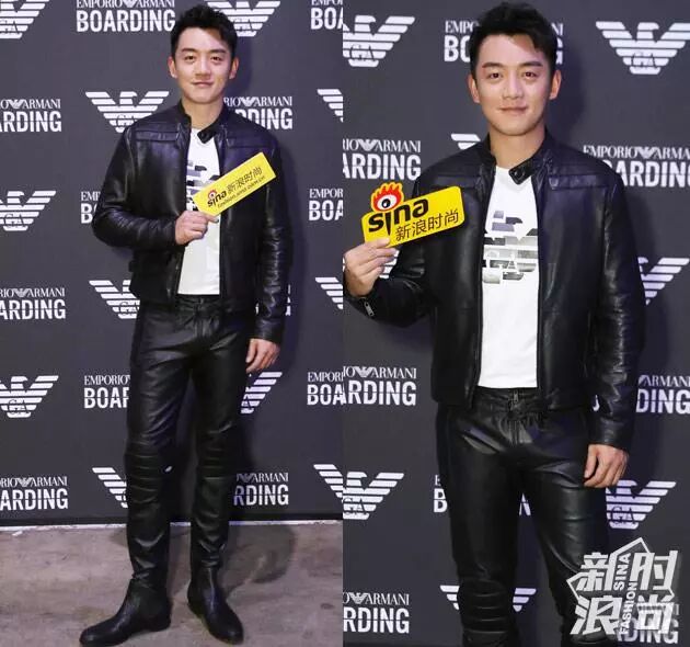 鄭愷助陣Emporio Armani大秀,看秀當日他選擇了黑色的皮夾克搭配黑色皮褲的硬朗造型亮相,內搭簡約白T,帥氣有型。