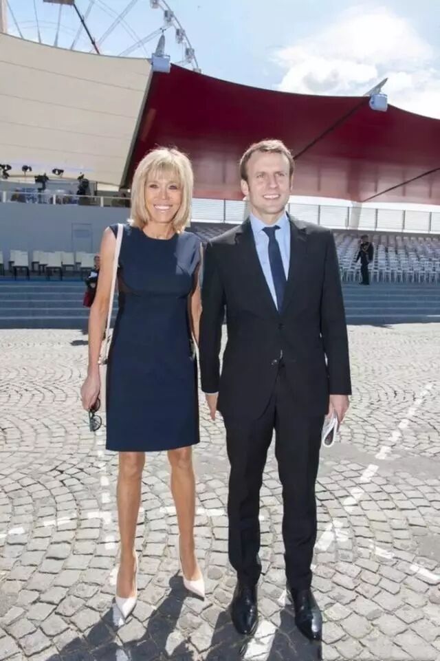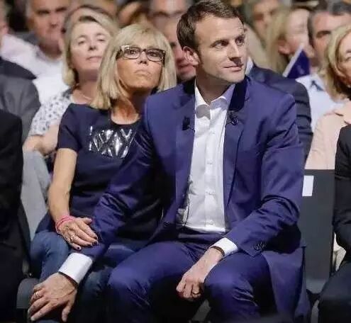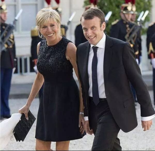 身穿藍色裙裝的布麗吉特和馬克龍看起來那樣般配,這就是愛情的力量,我喜歡你,想要和你在一起,為了能和你在一起,我要為之奮鬥!現在的馬克龍證明了他對老師布麗吉特的愛!