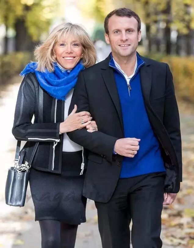 兩人穿情侶裝走在街上,雖然年齡相差24歲,但是精神上的溝通卻是一致了。布麗吉特是馬克龍的老師,同樣也是他的妻子,無論外界說什麼,兩人總是無時無刻在秀恩愛。