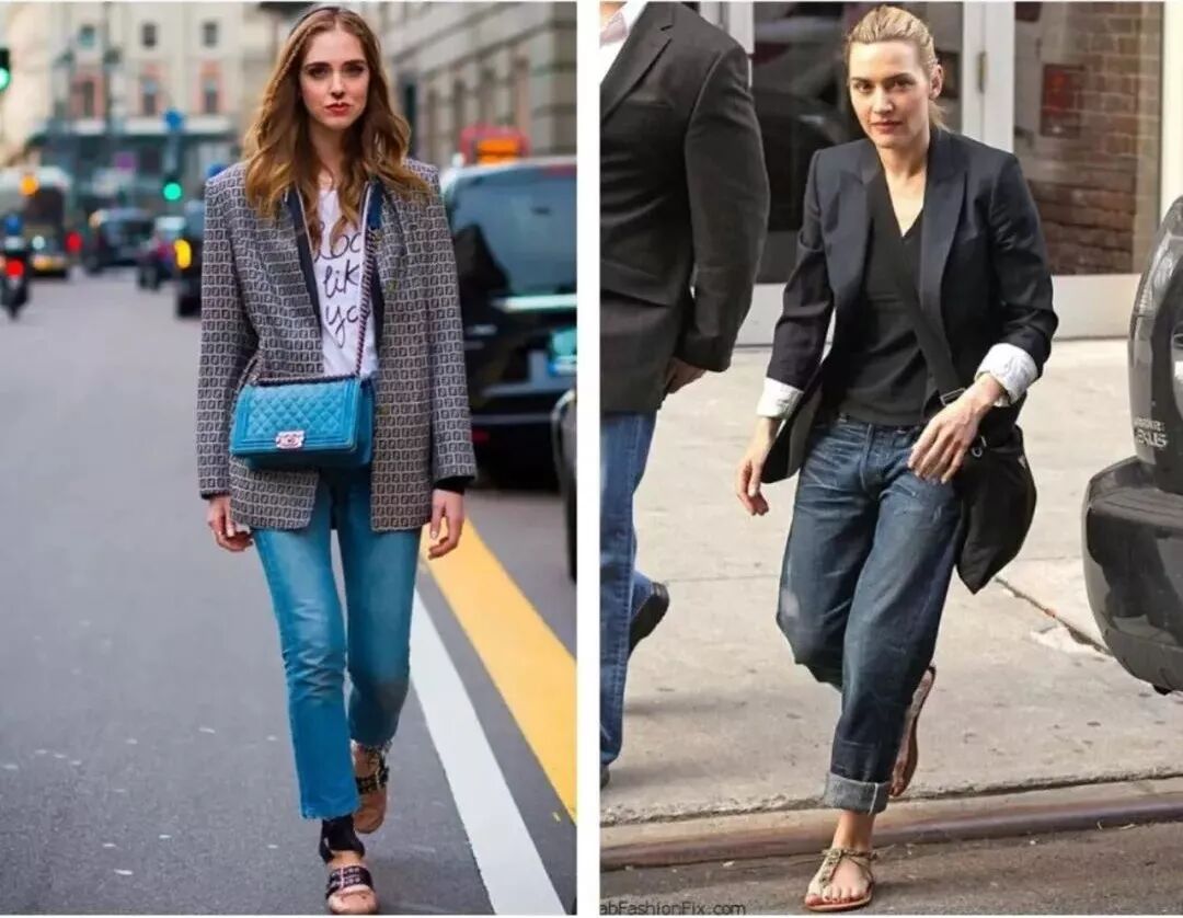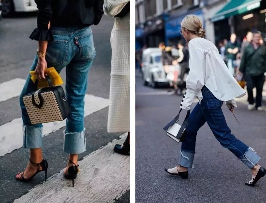錐形的mom jeans這幾年都很火,今年比mom jeans更火的是漁夫牛仔褲(就是褲腳往上翻像是漁夫下水需要卷邊的褲子)。姨覺得這種褲子看起來更有層次一些,時髦感更強一點。