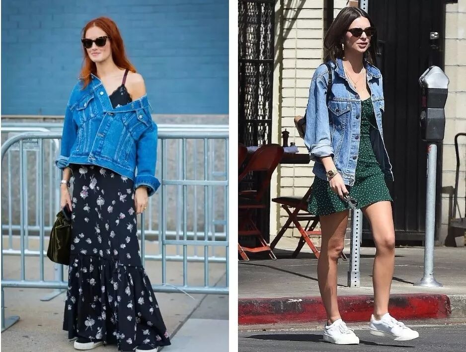 牛仔&碎花裙也是絕配!中性風的牛仔加上女生專屬的碎花,娘man平衡。個子高一些的姑娘可以選擇長裙更有氣場,短一些的碎花裙更加俏皮。