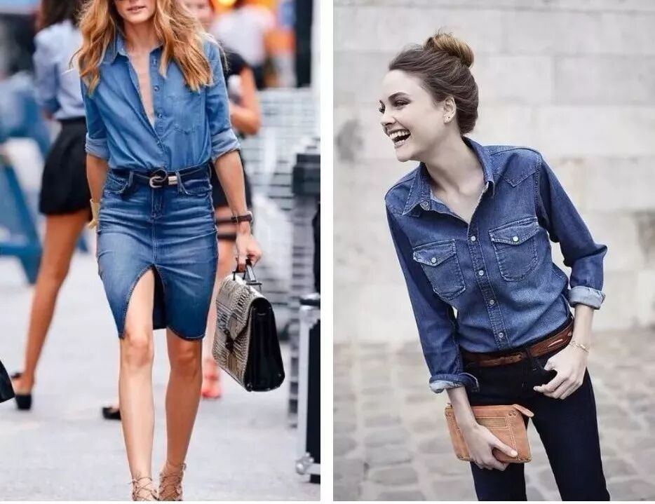 偏軟材質的牛仔襯衫更歐美休閒,適合上半身比較豐滿的姑娘。硬材質的牛仔襯衫比較日系文藝,適合平板女生。