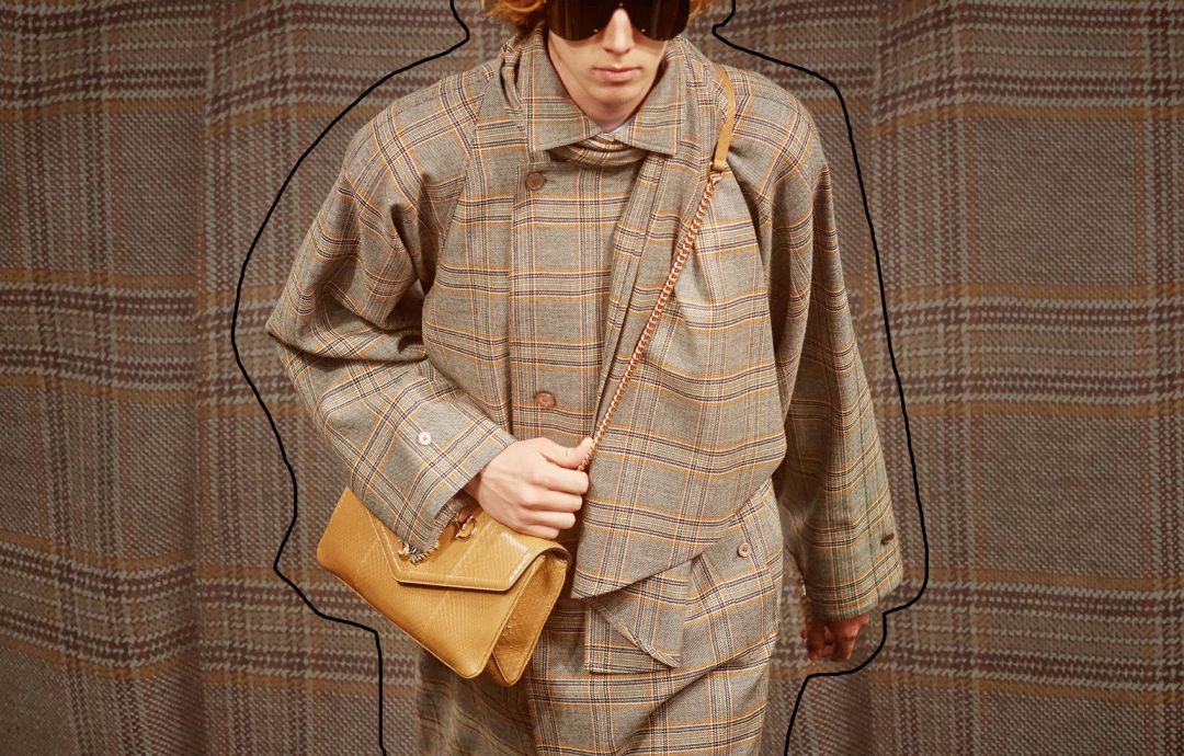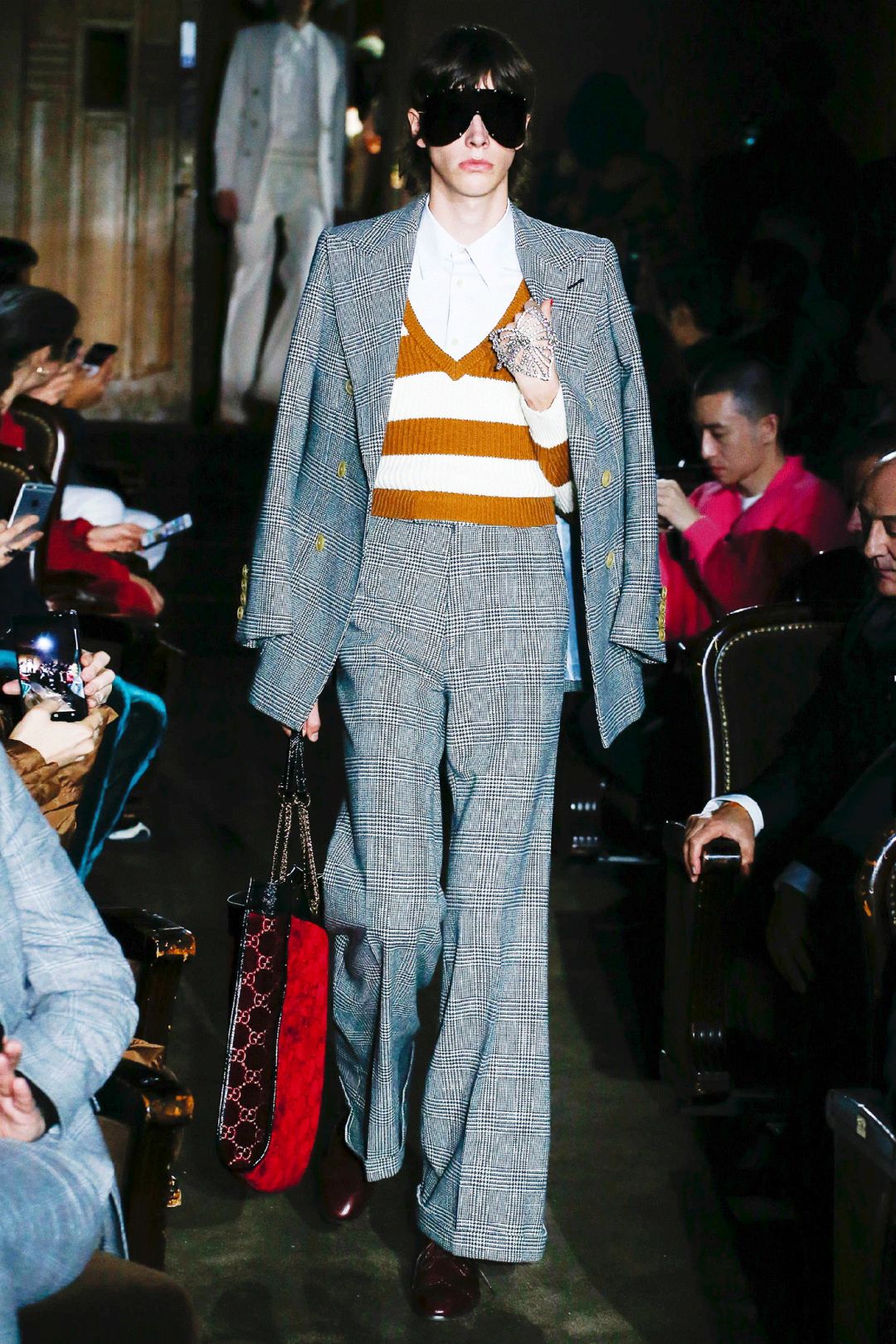 不看腿毛,這件Gucci風的千鳥格夾克,也可以穿吧……