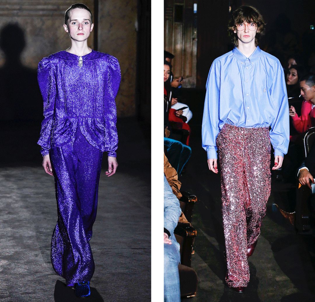 還有閃光面料的紫色長裙,和亮片長褲。