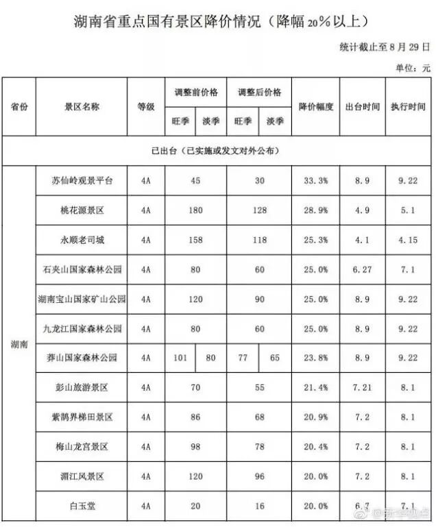 降價幅度20%的景區超70個,30個景區免費開放