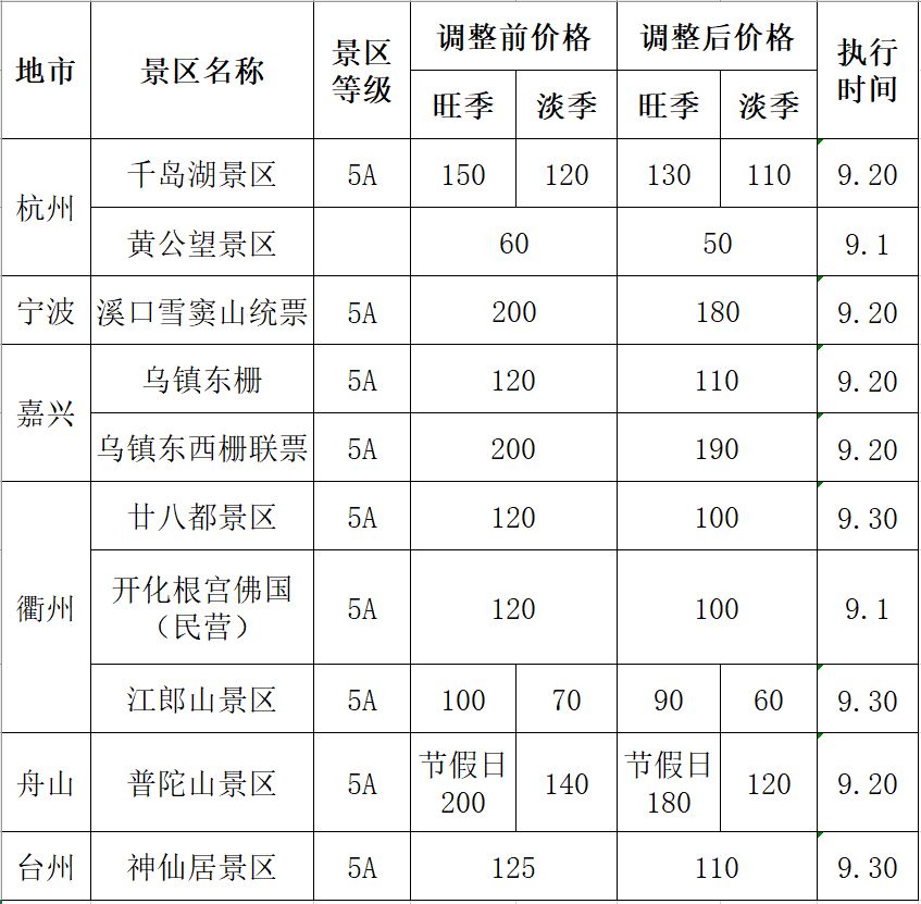 浙江還有不少景點都已宣布降價