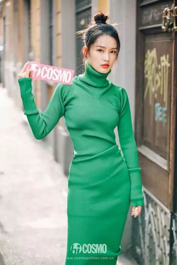 看秀之前,COCO在米蘭街頭「捉」到了這位小姐姐。她身穿Marni 2018秋冬系列的綠色針織長裙在街道優雅漫步,那一抹綠是當時整條街最讓人心曠神怡的景色。