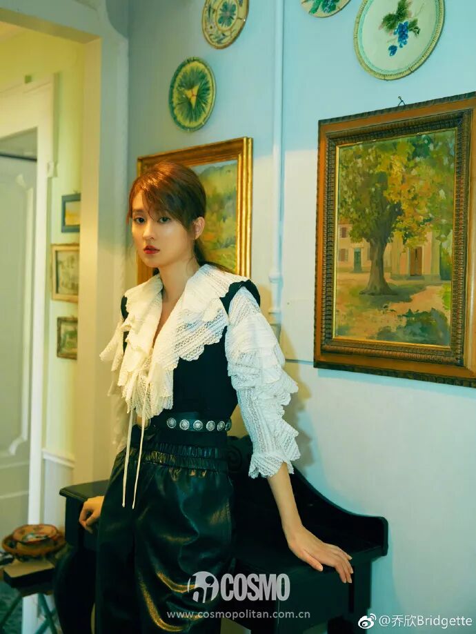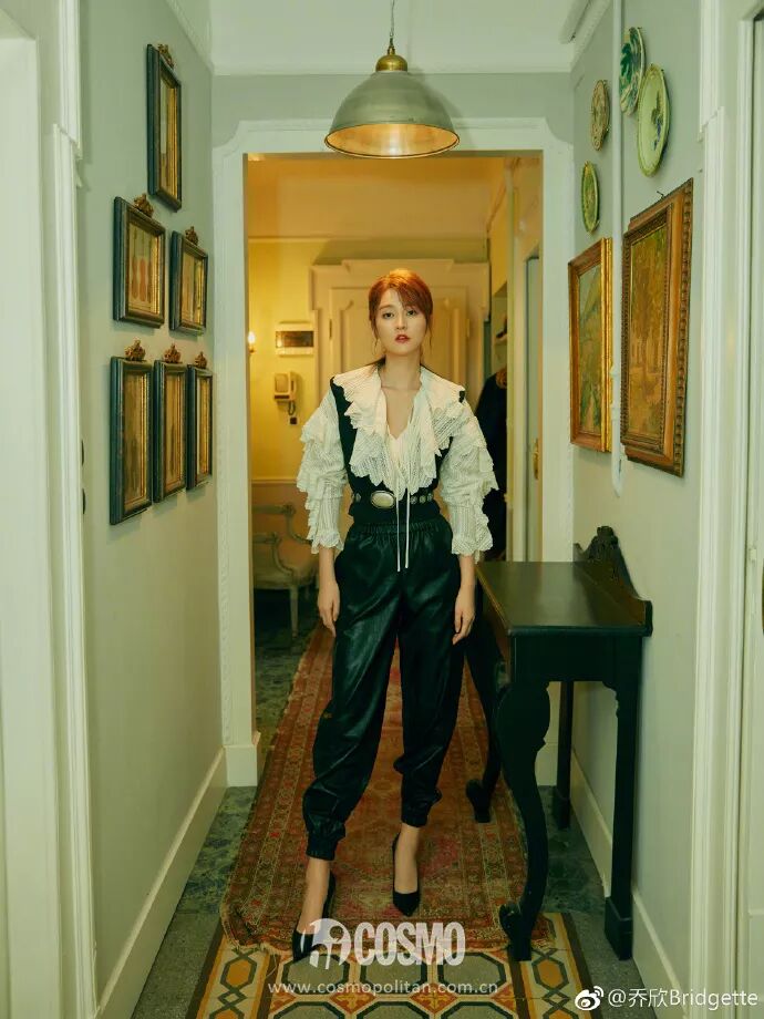 隨後受邀亮相Philosophy di Lorenzo Serafini 2019春夏大秀,她身穿波西米亞風格白色襯衫唯美浪漫,搭配黑色馬甲和皮褲又英氣瀟灑,徹底撕掉了《歡樂頌》中那個「乖乖女」標籤。