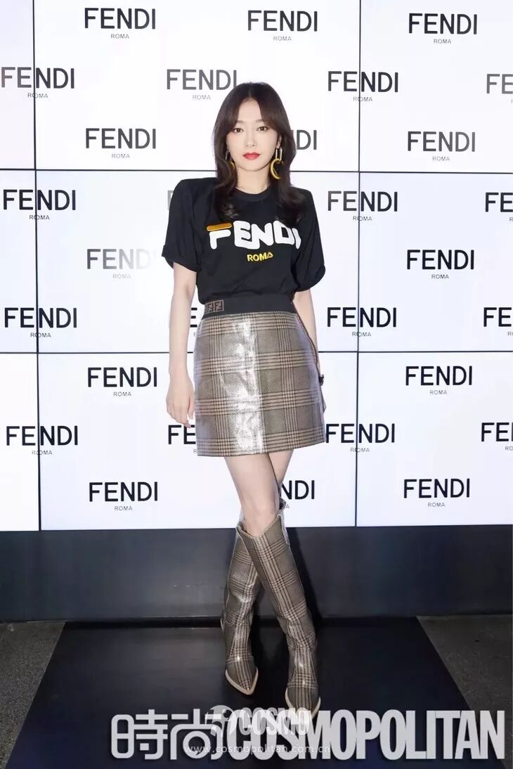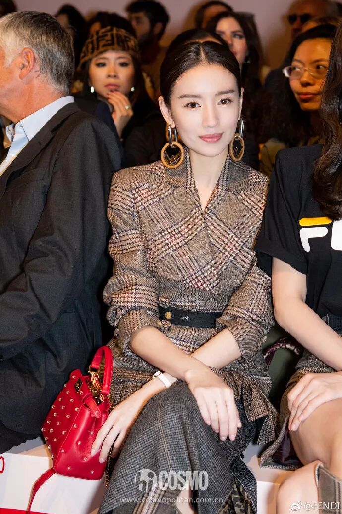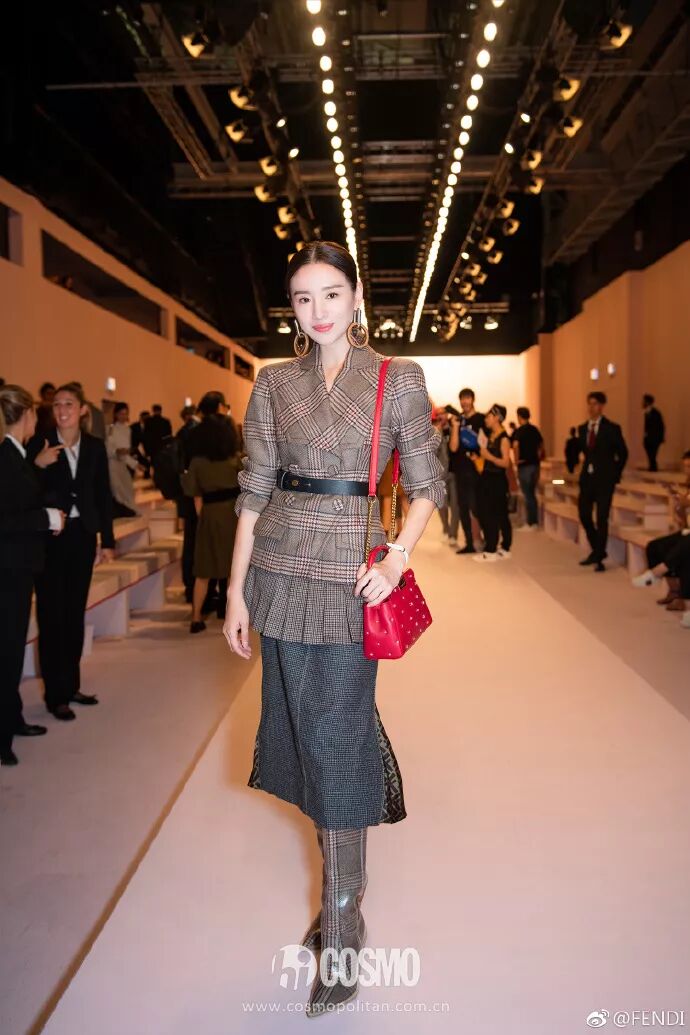 《如懿傳》中的「富察皇后」一身層次感格紋套裝,亮相FENDI秀場。董潔也同樣選了這款「F」 logo耳環(不愧是演過同一個角色的女人,選擇竟都如此相似),給整體優雅知性的造型大大增添了時髦度。