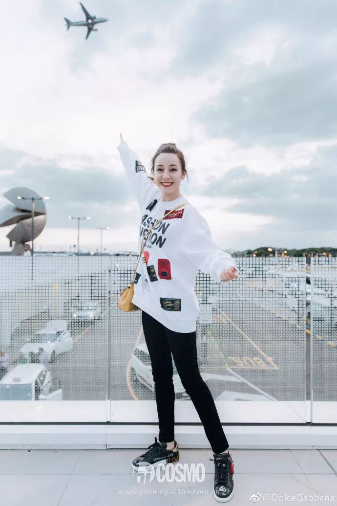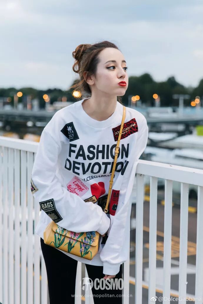 脫下秀服,胖迪一件Dolce&Gabbana 2018秋冬Fashion Deviton貼片印花衛衣,搭配黃色印花Sicily手袋,一下子又切換回了「小可愛」模式。這無敵的側顏,COCO不禁要單獨拎出來誇獎一遍。