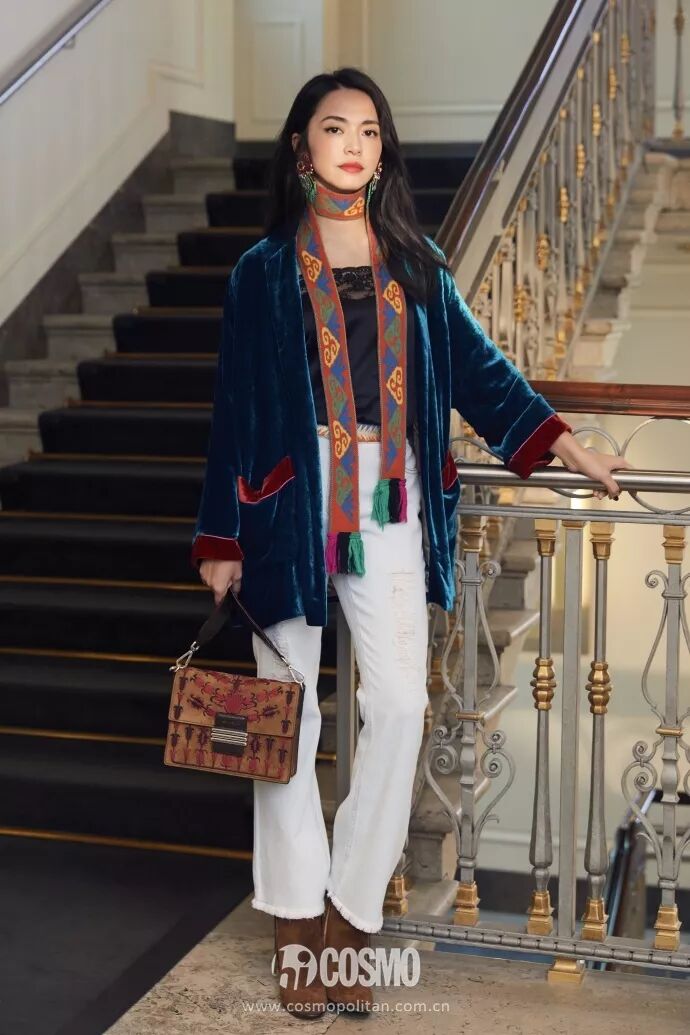 看秀現場,姚晨一件絲絨撞色外套搭配流蘇裁邊的白色牛仔褲,帥氣有型。極具民族特色印花的流蘇圍巾和耳飾的配飾,襯托得大姚更是無比浪漫。此次,姚晨還帶著老公和兒子一起來看秀,讓人看著都幸福感爆棚誒~