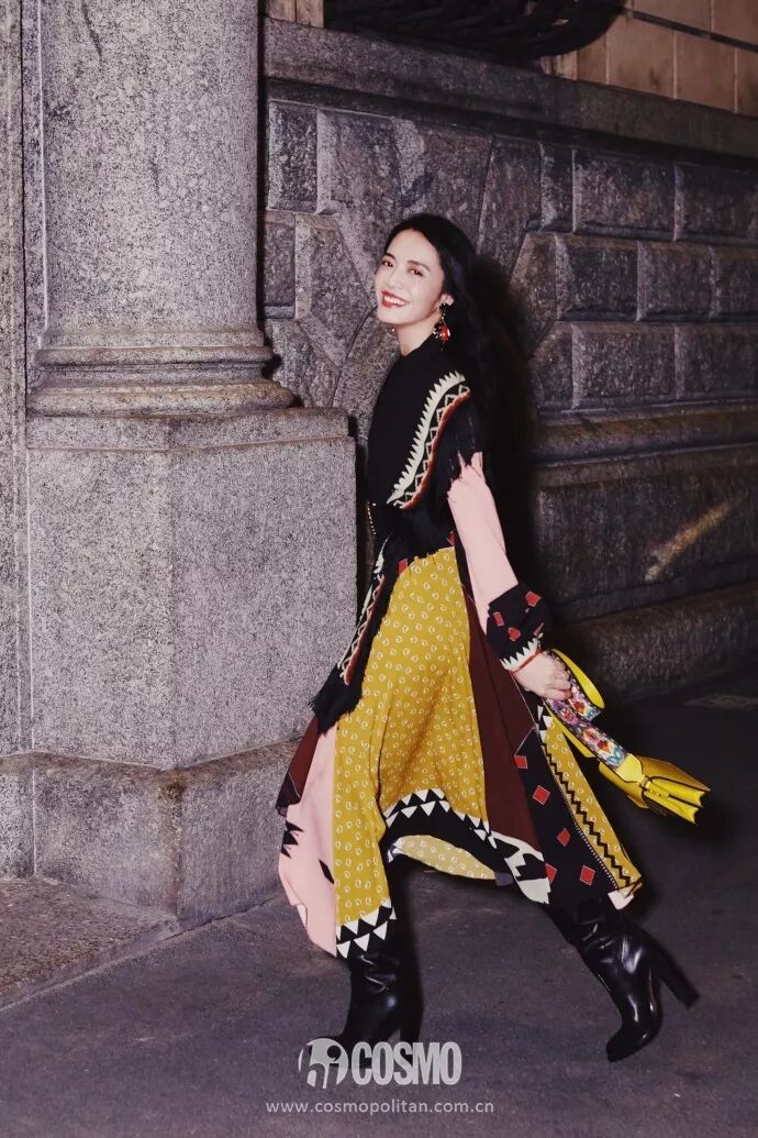 大秀過後,姚晨來到了米蘭文化博物館參加ETRO舉辦的《佩斯里時代》主題展覽。她身穿一襲佩斯里印花連衣裙搭配裸色長靴,與ETRO一起品鑒歷經半個世紀的佩斯里傳奇。
