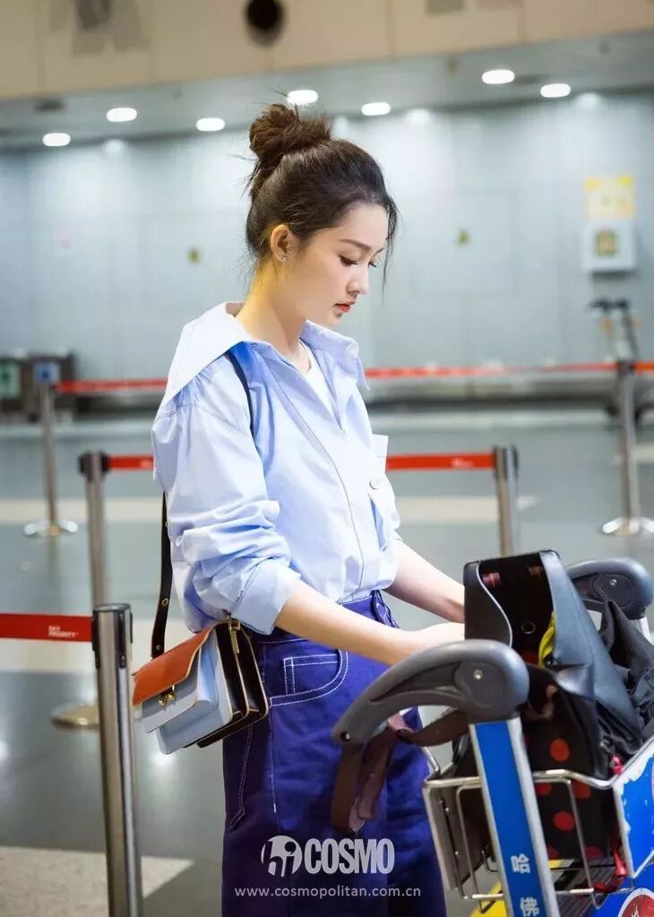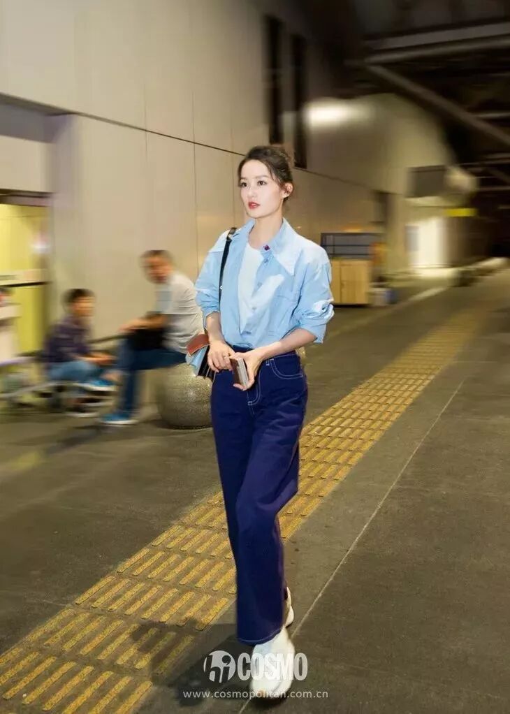 李沁成為了Marni品牌本季獨家邀請的中國女演員。出行時的機場look,李沁選擇了襯衫與牛仔褲的搭配,綁起清爽丸子頭髮型,乾淨利落。