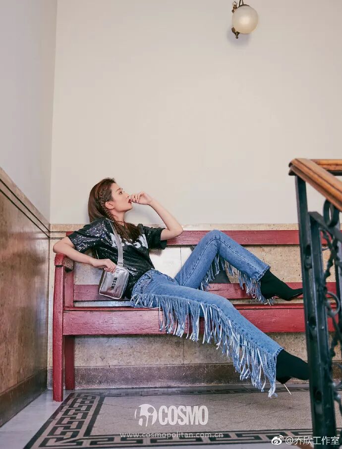 出席MSGM 2019春夏大秀,她身穿黑色亮片T恤搭配流蘇牛仔褲,復古獨特,非常符合品牌「活力個性」的調性。