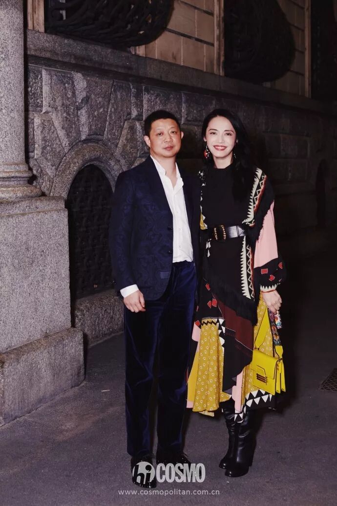 晚上攜老公出席ETRO私人晚宴,她身穿拼接雪紡連衣裙,外搭背心針織鬥篷,腳下踩了一雙皮靴,即便是夜晚也依舊抵擋不住她的艷麗明媚。