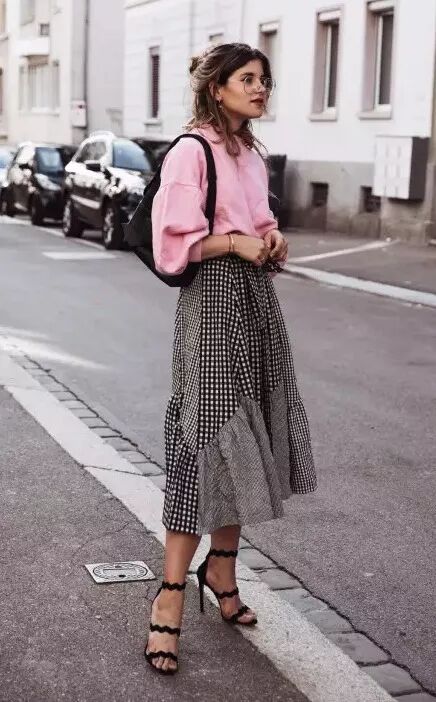 長裙搭配鞋子時,可選擇性也非常多,高跟鞋、短靴、小白鞋、樂福鞋……每一雙搭配效果都時髦有型。
