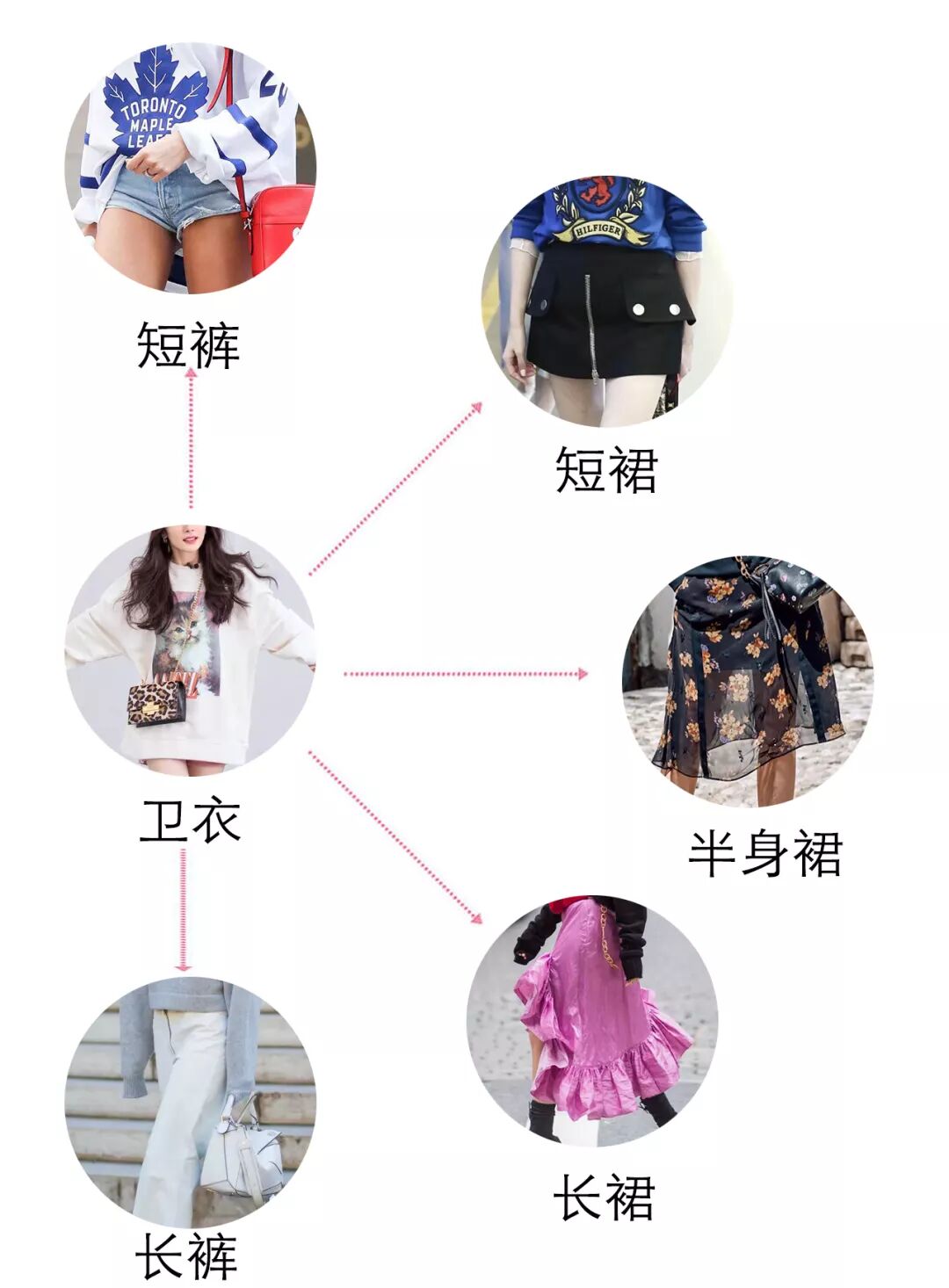 總的來說:可以選擇偏成熟和時尚感的短裙和鞋子來配衛衣,既高級又不會太成熟!