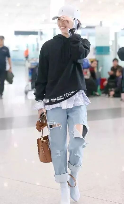 後來多觀察後,發現可能換換褲型、長度會好很多,首先牛仔褲因人而異啦,如果你本來很瘦,也是可以穿的,以破洞褲最佳!會打破普通沉悶感,有些許街頭風格,也是彰顯青春時尚的經典搭配。
