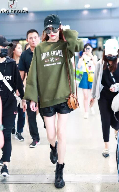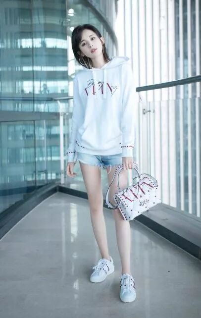 如果想顯腿長,建議選擇高腰款的短褲,衛衣紮進褲腰也是露出高腰線顯出大長腿的小心機,非常適合嬌小身材的女生。鄧紫棋雖然衛衣+短褲的穿法比起皮褲look要好太多,但是如果衛衣紮進褲腰應該會更好看!