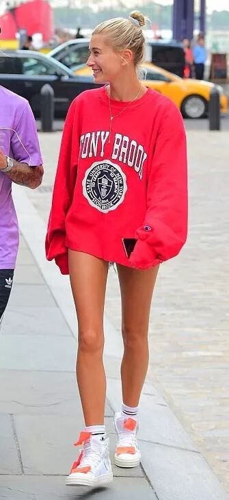 稍微長一點的寬寬鬆松的Oversize衛衣搭配短褲是「下半身失蹤法」的慣用套路,每次都會很驚艷。