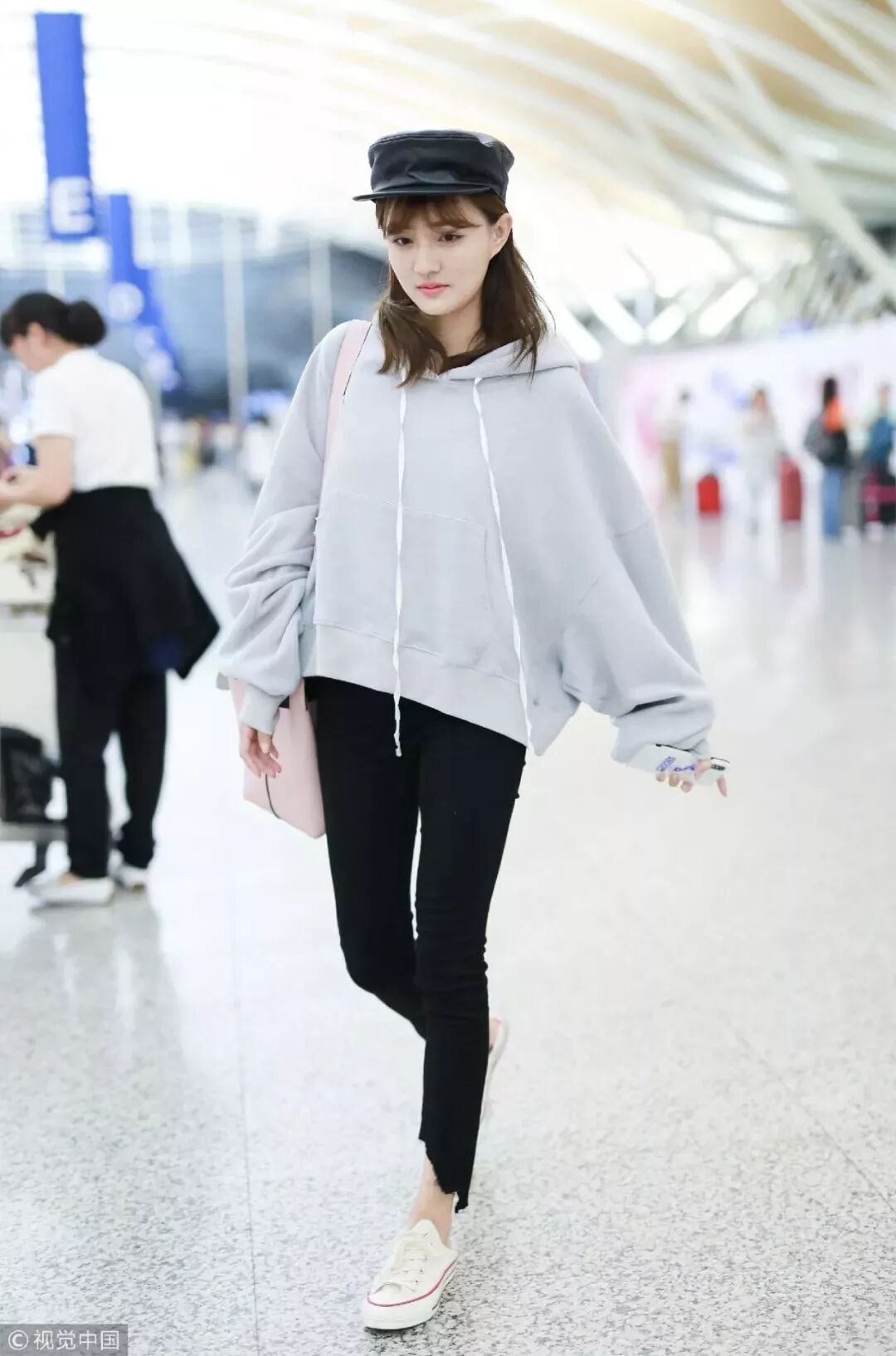 還有不少女星喜歡衛衣+短褲+長襪的組合,很有少女感,建議腿細腿直的仙女嘗試吧,還是比較挑身材的。