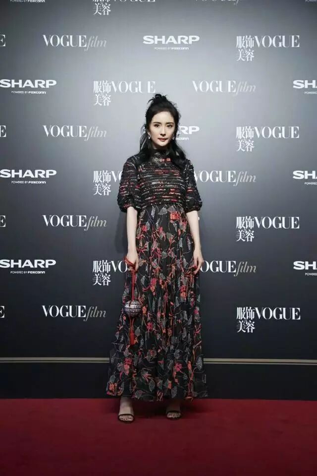 之前出席活動穿的一條長裙真是太美膩了,這種碎花的裙款很仙氣,可是看到她的這張臉就辣眼睛了,感覺臉有些僵硬,沒有那種活力感!