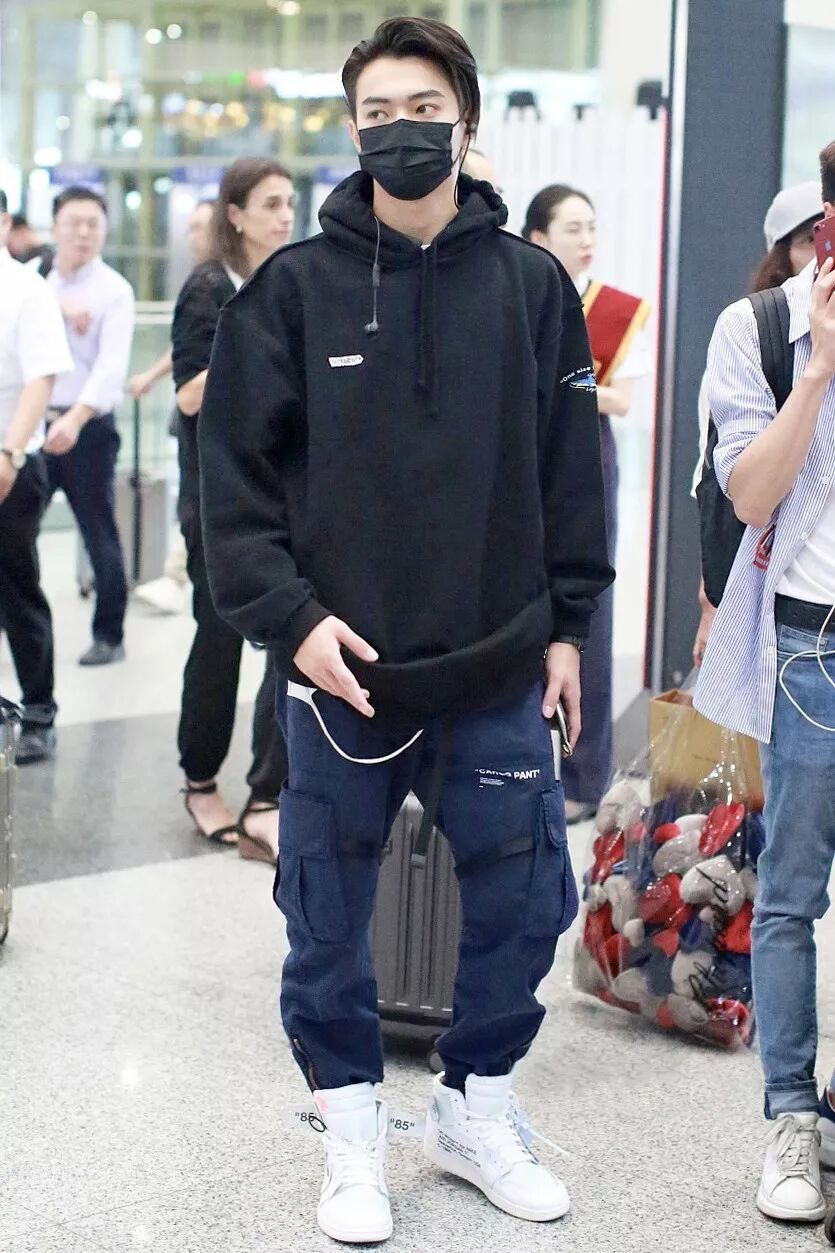 衛衣是男生出街必備嗎?小鬼王源吳磊和許凱都是衛衣出街,有搭配牛仔褲的,也有搭配工裝褲的,許凱這雙nike x off white聯名款超好看!