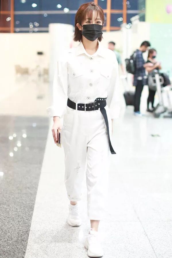 首先,來表揚表揚楊紫小妮子。這條白色牛仔連體褲搭配腰帶和運動鞋、短髮,幹練休閒,好看!