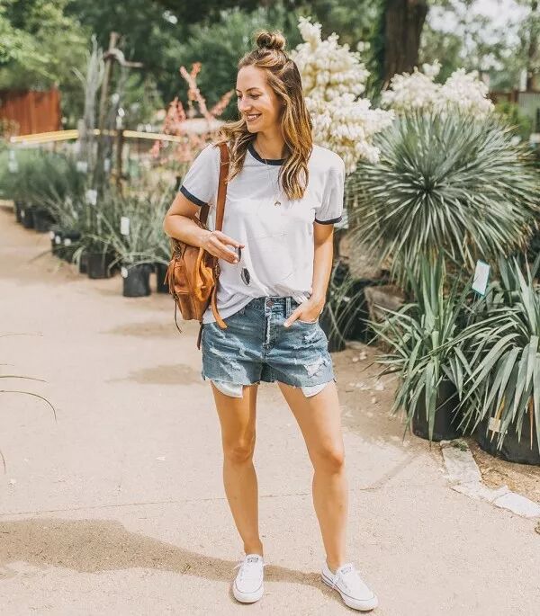 夏季更清涼的穿搭方式就是T恤打結+短褲,不僅應季而且時髦~