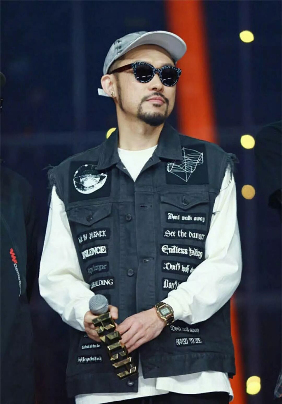 看了中國有嘻哈的朋友對這個人應該不陌生。黑色工裝馬甲+白色打底衛衣搭配出來乾淨利落。要相信黑白經典搭配是永遠不過時的。