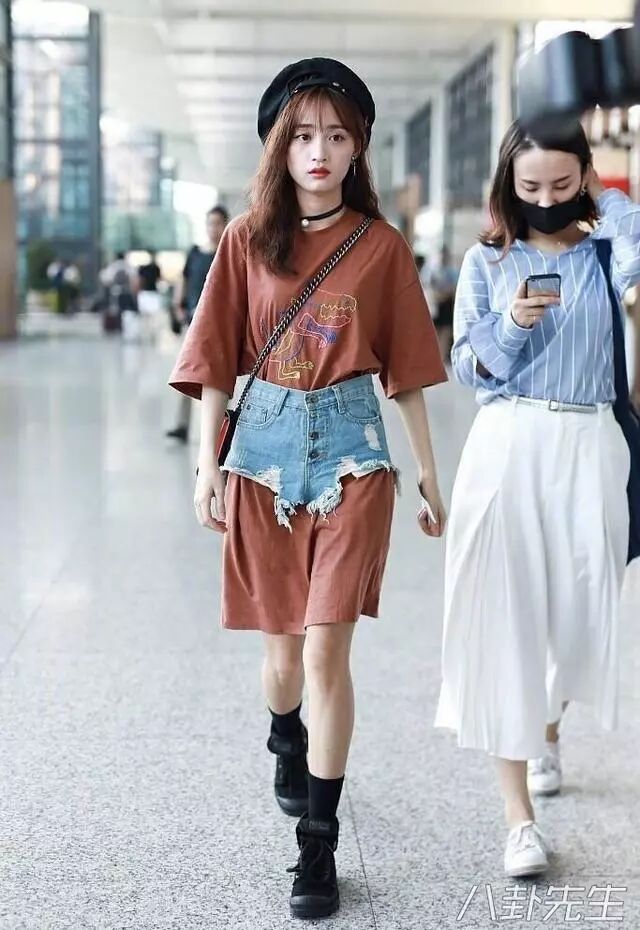 不過讓八先生印象最深刻的「時尚」穿搭,莫過於SNH48的黃婷婷,前幾天她穿了T恤配牛仔短褲,上半身看著很正常▼