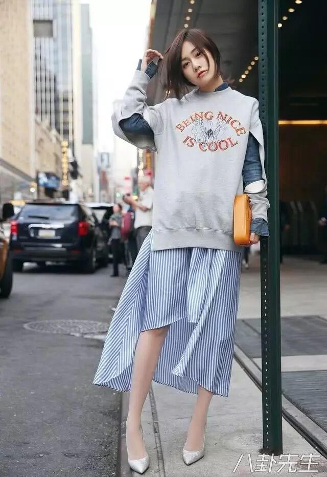吳宣儀也有過跟劉維類似的穿法。光看上半身,沒什麼可吐槽的,無非是牛仔外套配裙子▼
