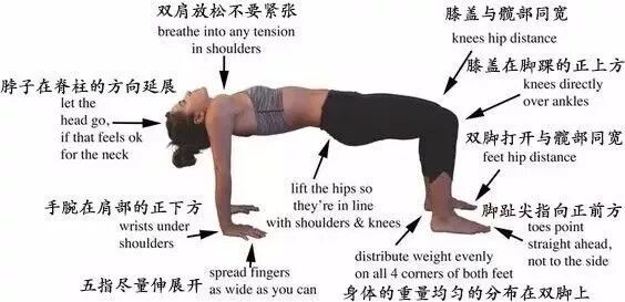 桌子式練習過程中眼睛可以看向肚臍或天花板,但注意脖頸放鬆,不要過度緊張。整個身體呈現像桌子一樣。