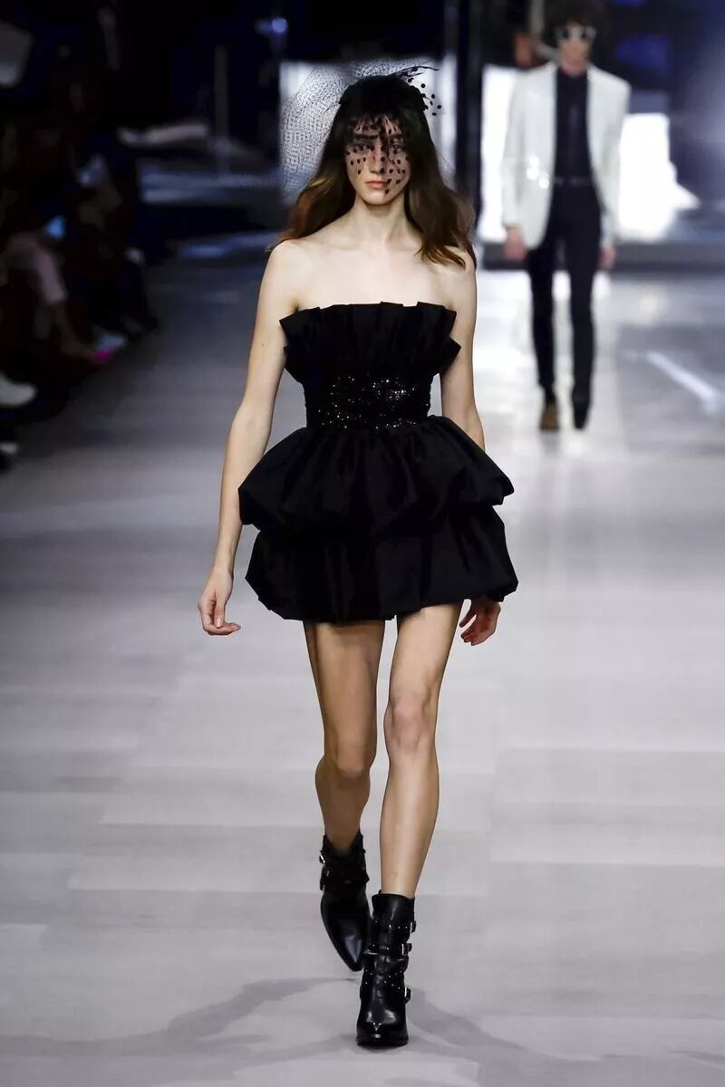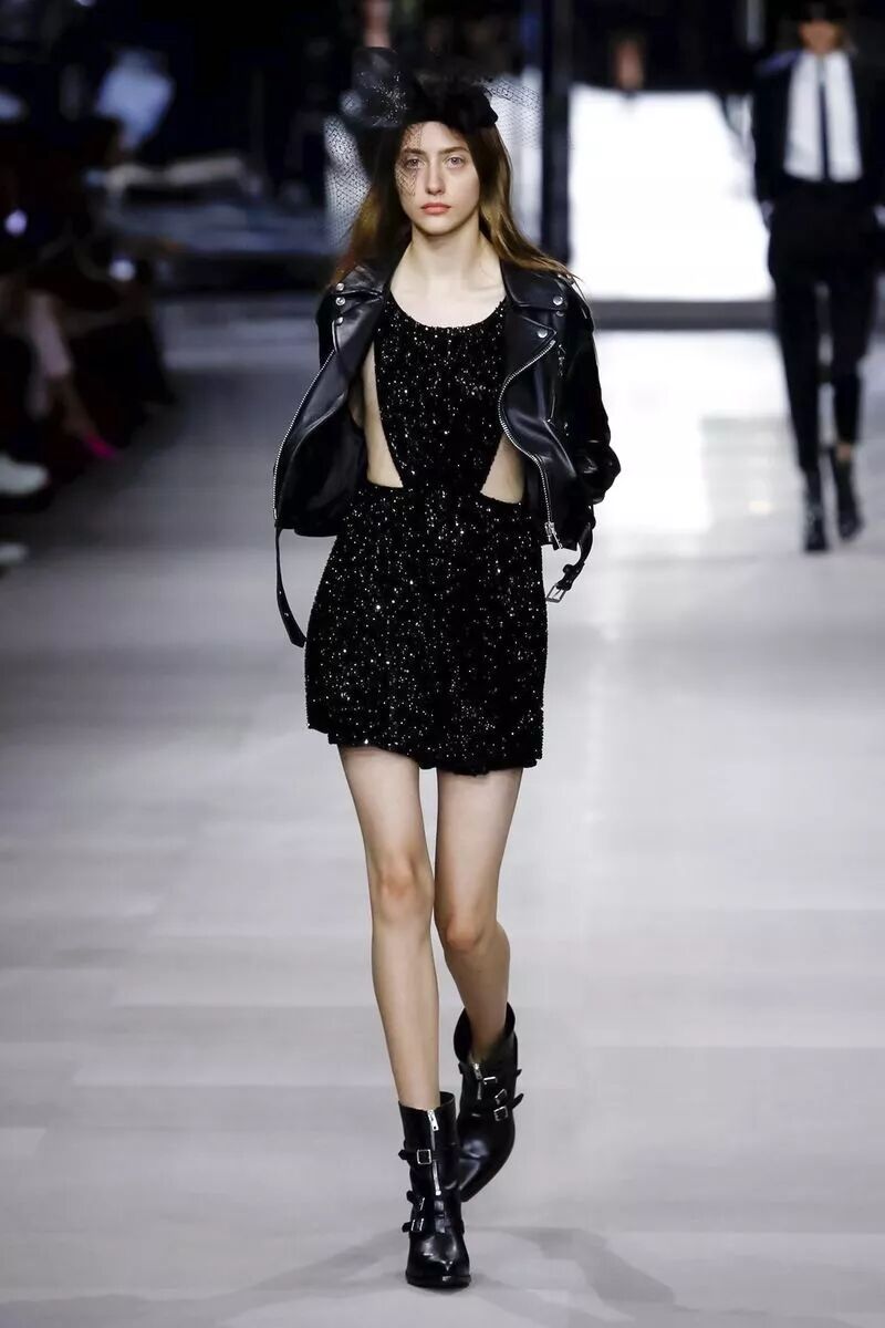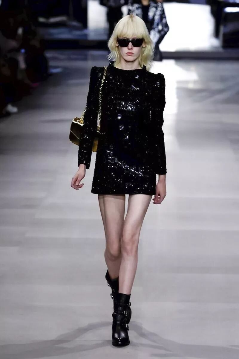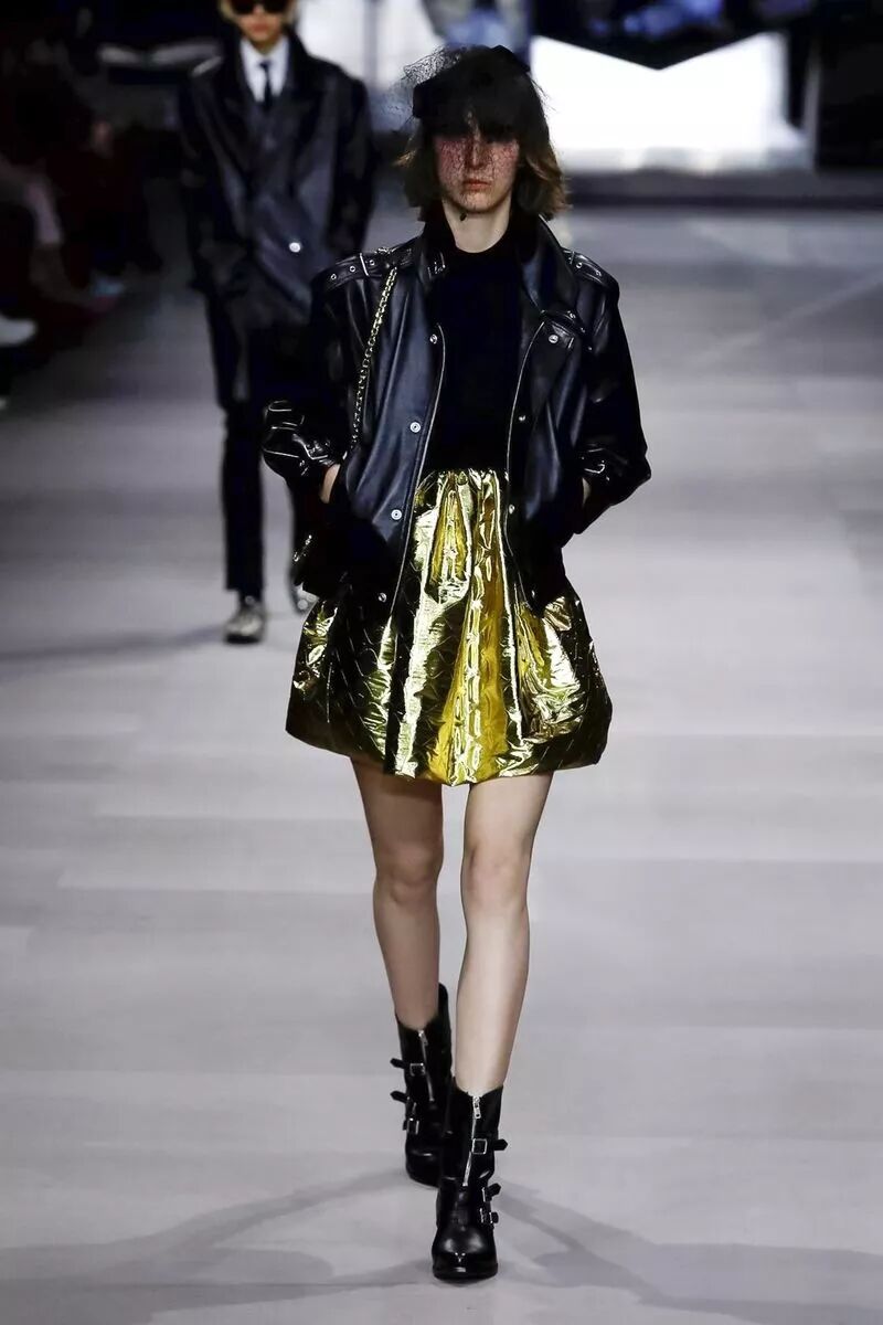 窄版西裝、刺繡連衣裙、皮質夾克和歐根紗禮裙、斜肩、抹胸禮裙……Hedi Slimane一如既往用時裝傳達搖滾語言,這場CELINE 2019春夏系列仿佛穿越時空直接與他在Saint Laurent發布最後一季2016秋冬系列無間隙承接。