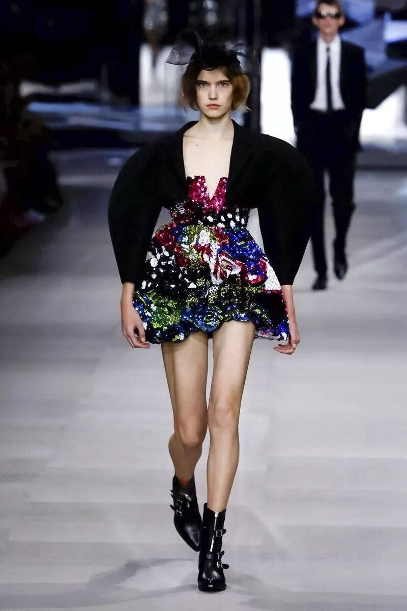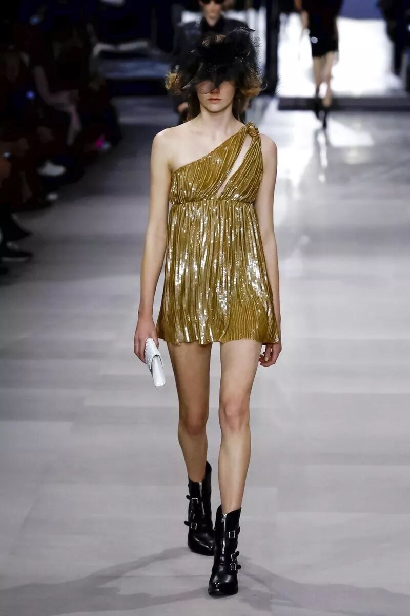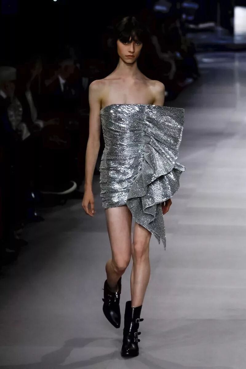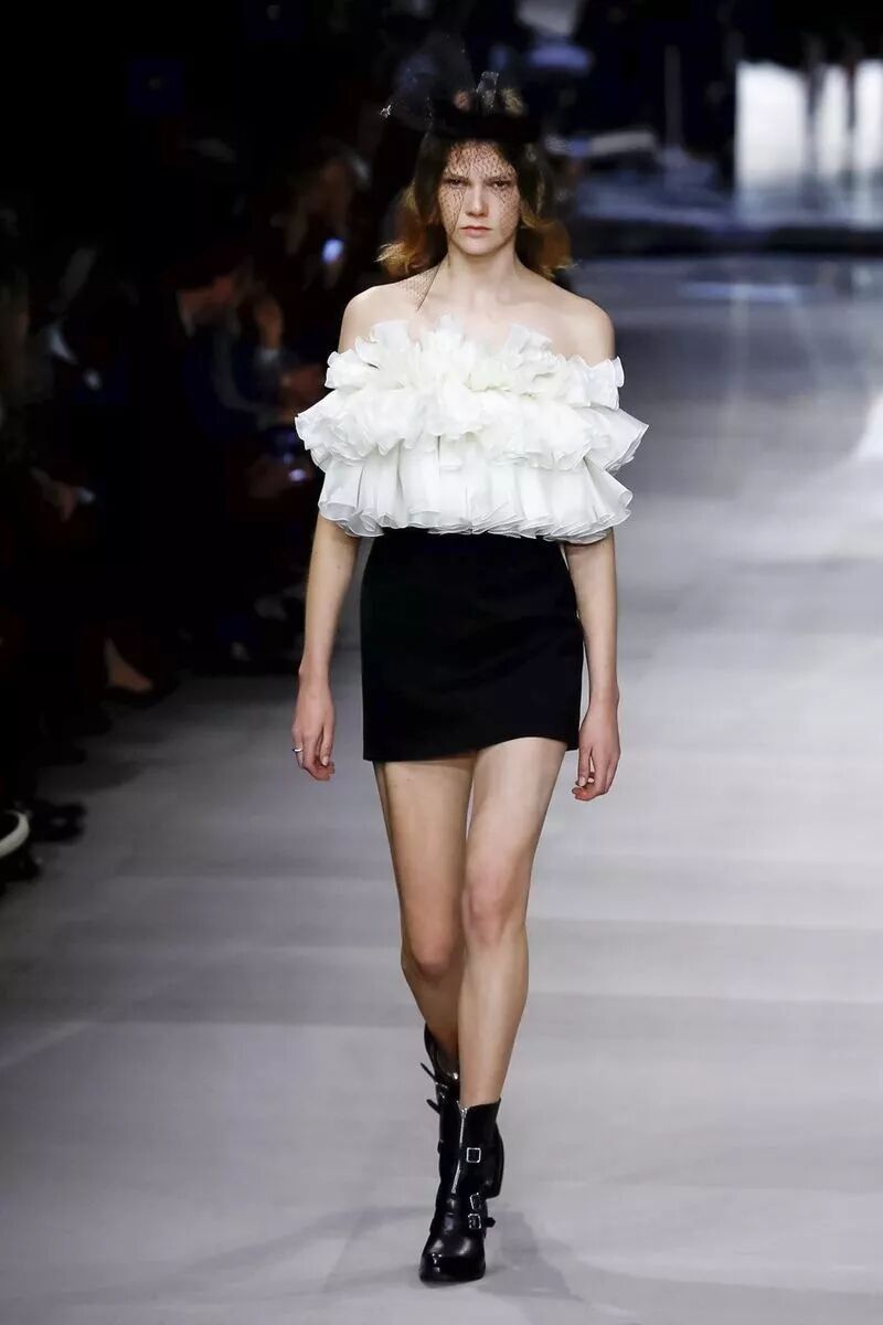 窄版西裝、刺繡連衣裙、皮質夾克和歐根紗禮裙、斜肩、抹胸禮裙……Hedi Slimane一如既往用時裝傳達搖滾語言,這場CELINE 2019春夏系列仿佛穿越時空直接與他在Saint Laurent發布最後一季2016秋冬系列無間隙承接。
