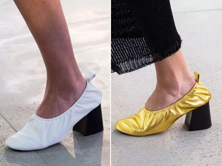 而如今正盛行的佛系奶奶鞋,也是出自Phoebe之手。2015春夏系列中,Phoebe首次以芭蕾舞鞋為基礎,設計了一款擁有松緊褶皺鞋面,外加厚重方跟的文藝奶奶鞋,一經發售便成為眾多時髦精的哄搶對象,絲毫不比現在的老爹鞋差。