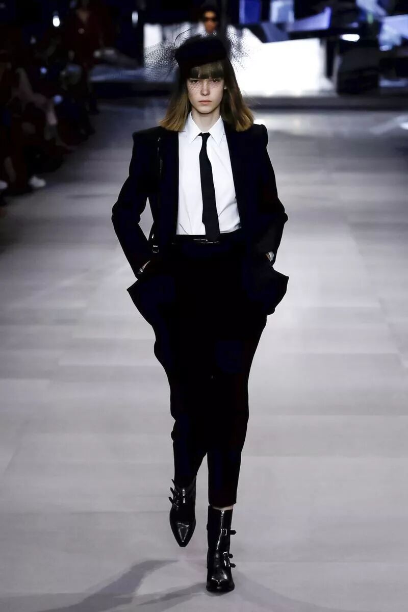 帶著Hedi Slimane標籤的黑色與金屬材質鋪面而來,廓形剪裁讓人直呼「CELINE小到穿不下」。