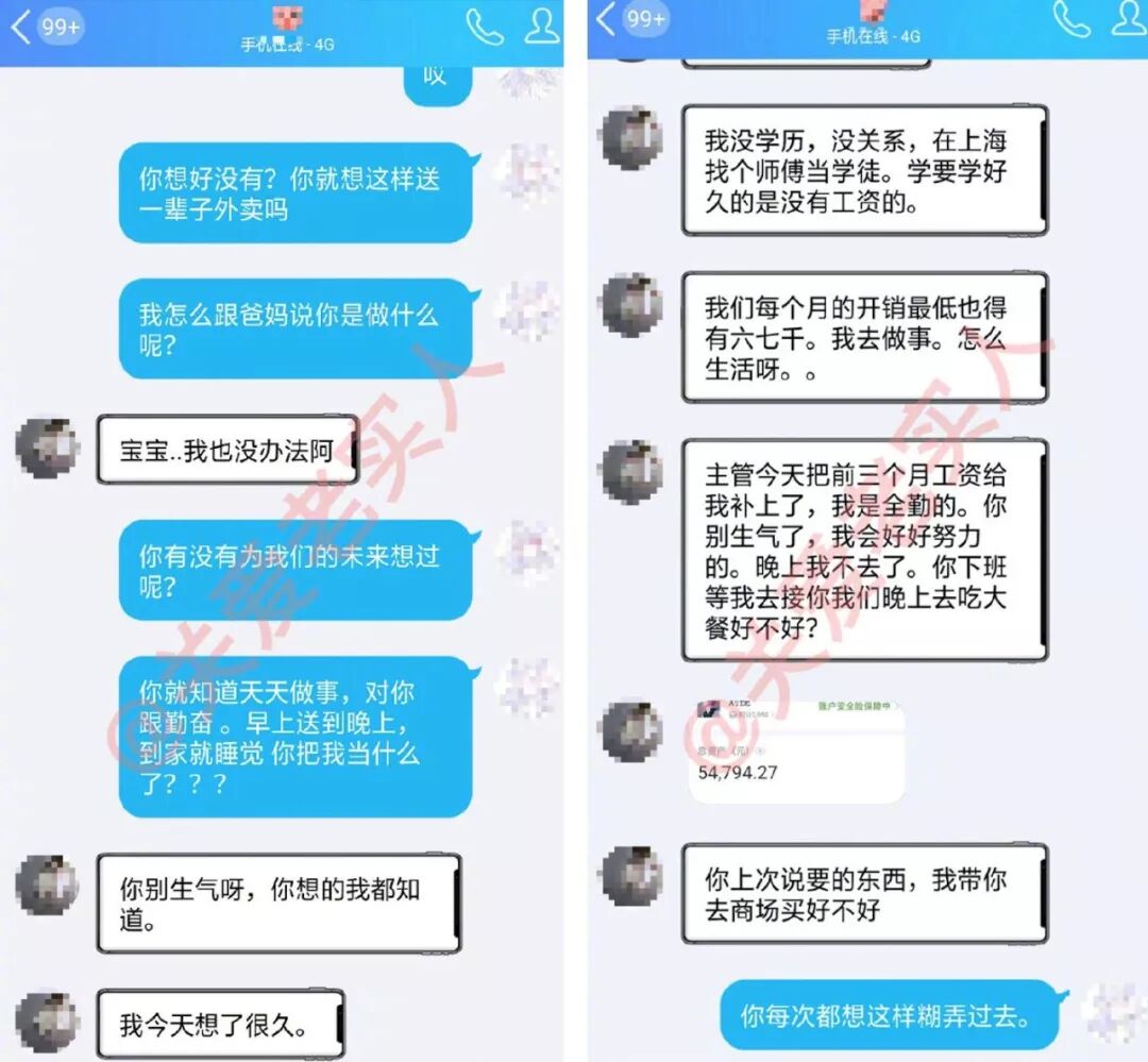 至於這個女孩,雖然學歷稍微高點,但拿個4000塊的月薪,不足男友薪水的三分之一,心安理得吃男友的用男友的,竟然還有臉嫌棄男友送外賣?
